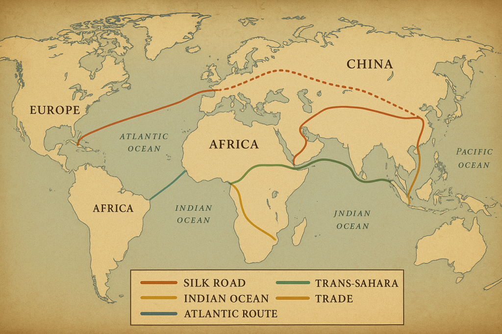 This article explores the evolution of trade across ancient, medieval, and modern times — tracing the major trade routes, commodities, and innovations that transformed societies and laid the groundwork for our interconnected global economy.